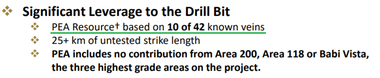 - Resource from the existing 10 veins will hit (or be close to) management’s PEA estimates.