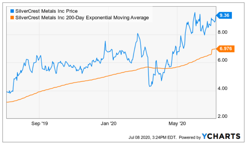 SilverCrest Metals (NYSEMKT:SILV) is currently trading near the higher end of its 52-week price range, and the stock is also way above its 200-day EMA (read: Exponential Moving Average) which raises concerns about the stock’s current valuation. This view is further reinforced when we consider SILV’s price-to-book valuation in comparison with peer miners (those engaged in exploration/ development of primary silver projects).