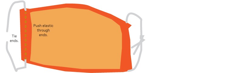 Don’t have elastic? Use hair ties or elastic head bands. If you only have string, you can make the ties longer and tie the mask behind your head.