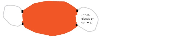 3. Gently pull on the elastic so that the knots are tucked inside the hem. Gather the sides of the mask onthe elastic and adjust so the mask fits your face. Then securely stitch the elastic in place to keep it fromslipping.