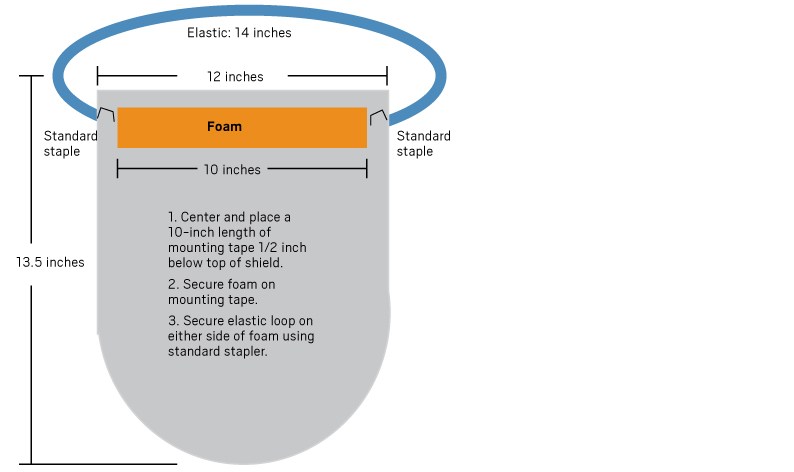 Face shield parts:• Vinyl – 16 or 20 gauge marine grade vinyl (find in fabric or hardware stores)• Polyurethane foam – 1 inch by 1 inch (cut down from larger sheet)• Braided elastic – 3/8 to ½ inch (larger might require two staples per side)• High quality mounting tape such as Gorilla and Scotch.