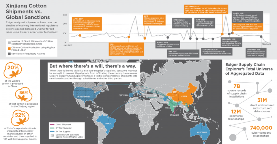 “The turbulence of the market has given us unique insight into the challenges our clients face in trying to understand their supplier networks in both their day-to-day work and in a crisis,” says Brendan Galla, Exiger’s chief product officer.