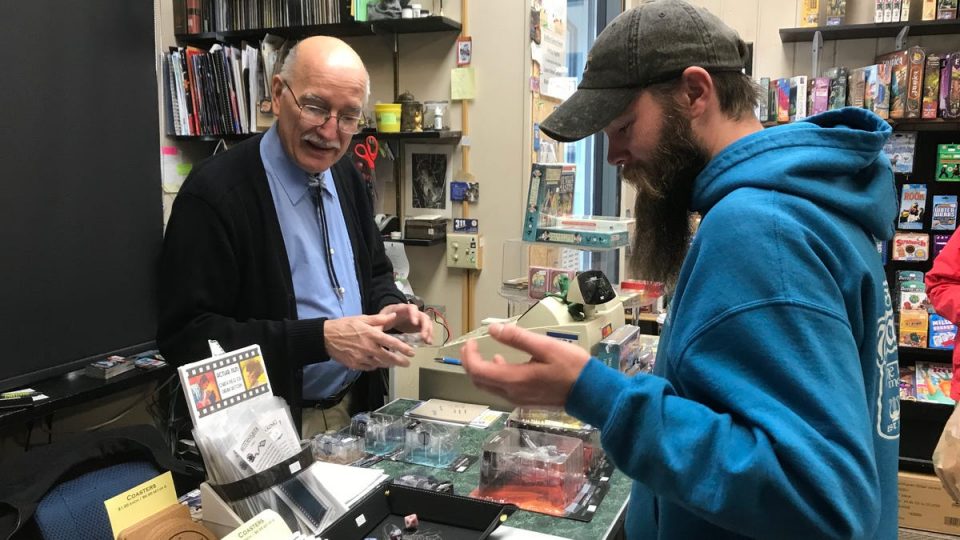 Luke Freeman, who exited Griffon Bookstore with an armful of figurines from the game Dungeons & Dragons, said he’s bought from large online stores in the past, but has found there are advantages to shopping local.