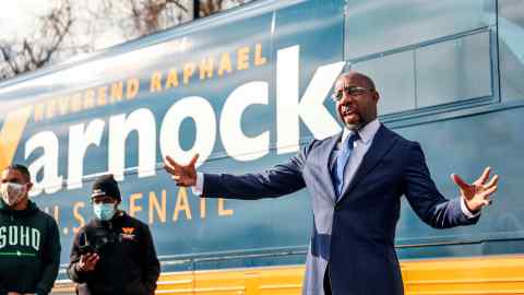 A Democratic party victory in both run-off elections would result in a 50-50 split of the upper house of Congress with incoming US vice-president elect Kamala Harris able to break the tie in significant votes such as budget resolutions.
