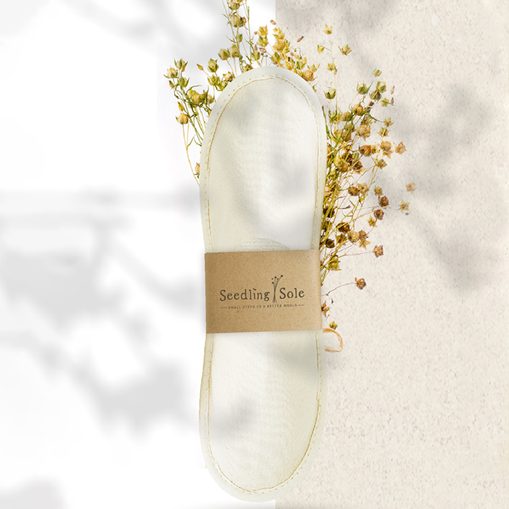 Seedling Sole are natural, plant-based and 100% biodegradable slippers that can be worn with pleasure, and thoughtfully discarded afterwards into the compost where they will leave no harmful trace and completely decompose.