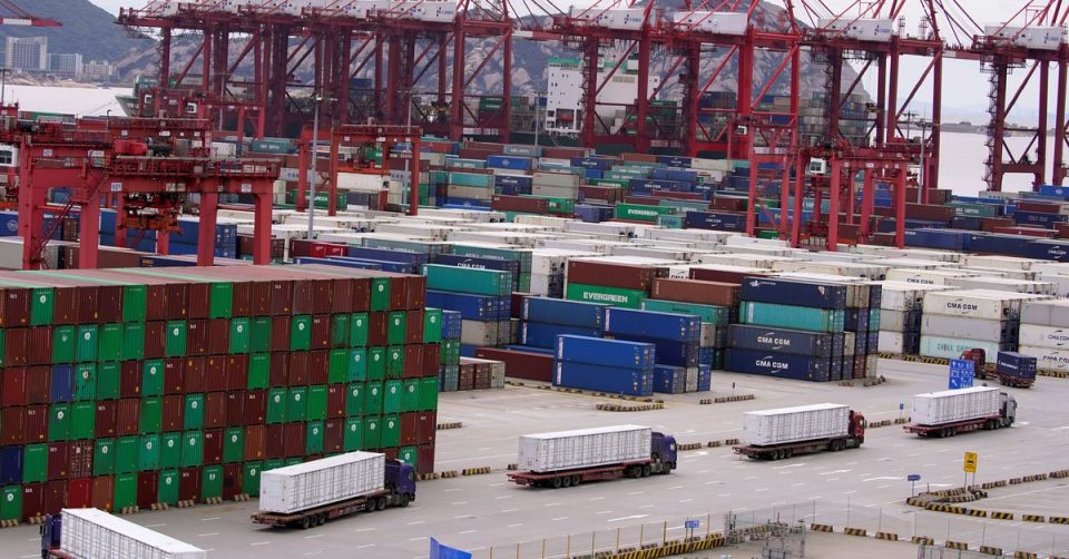 Containers and lorries are seen at the Yangshan Deep Water Port in Shanghai, China, as the coronavirus disease (COVID-19) outbreak continues, October 19, 2020. REUTERS/Aly Song