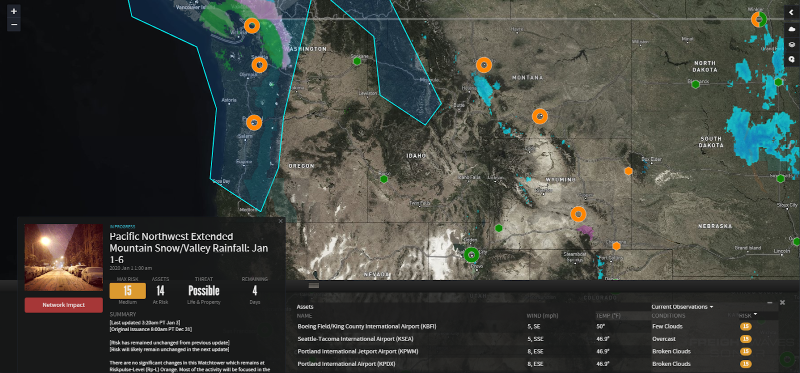 Because of the storms, air cargo could be delayed at times at Seattle-Tacoma International (ICAO code: SEA) and Portland International (ICAO code: PDX) airports. Operations at the ports of Seattle, Tacoma and Portland will be interrupted intermittently, as will several oil/petroleum facilities and railroads in the region.