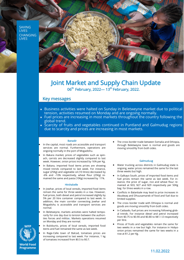 Business activities were halted on Sunday in Beletweyne market due to political tension, activities resumed on Monday and are ongoing normally.