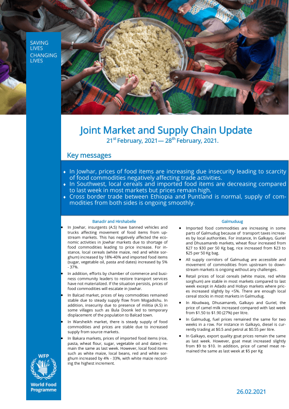 In Jowhar, prices of food items are increasing due insecurity leading to scarcity of food commodities negatively affecting trade activities.