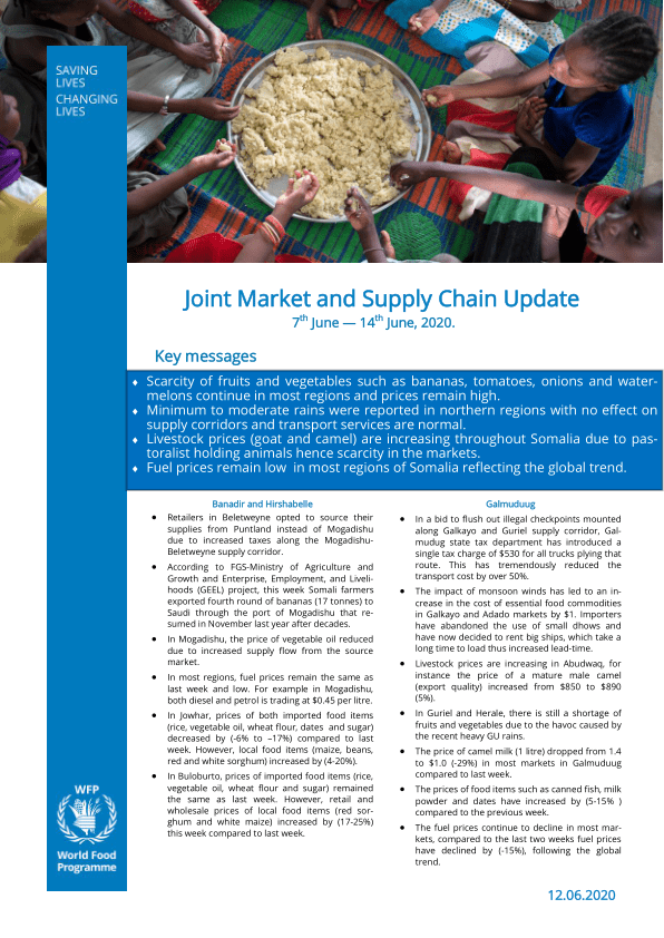 • Retailers in Beletweyne opted to source their supplies from Puntland instead of Mogadishu due to increased taxes along the MogadishuBeletweyne supply corridor.