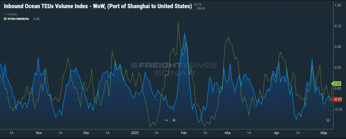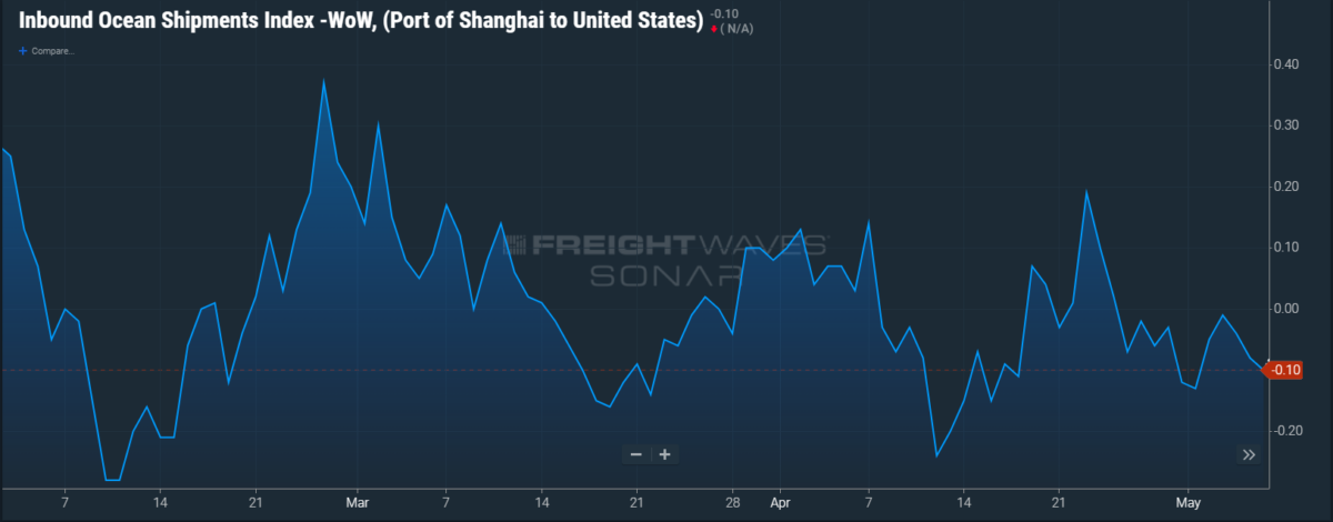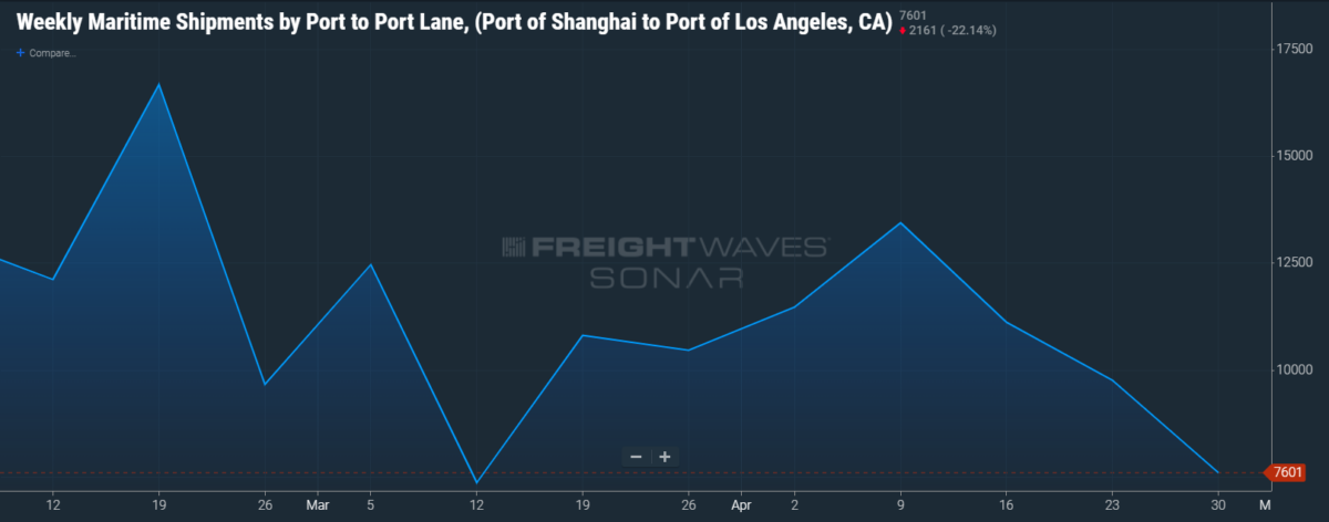 Below are FreightWaves SONAR charts that take a real-time temperature check on the Shanghai trade route.