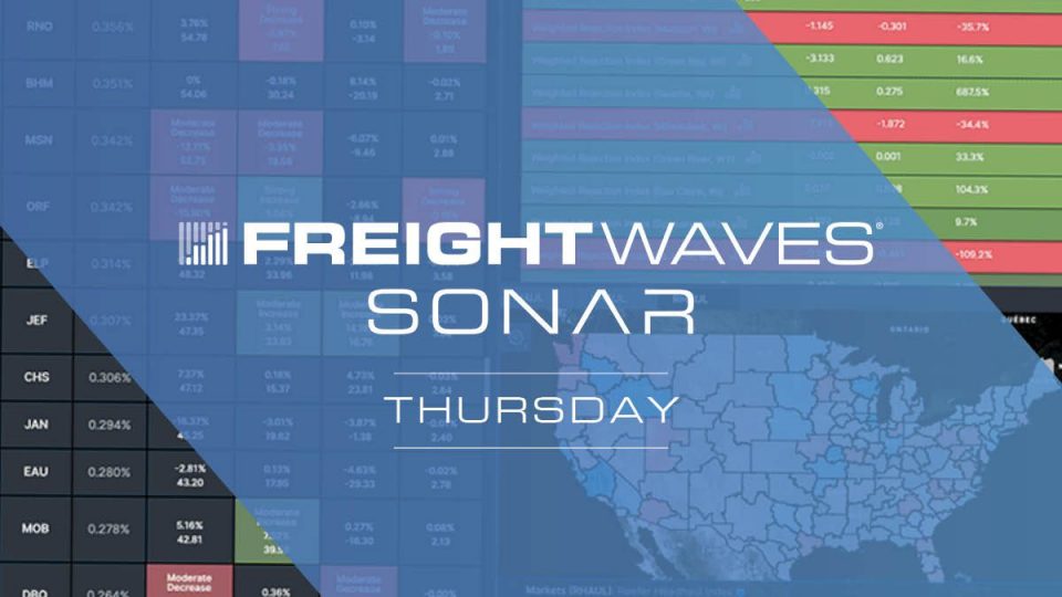 The highlights from Thursday’s SONAR reports. For more information on SONAR — the fastest freight-forecasting platform in the industry — or to request a demo, click here. Also, be sure to check out TRAC — the freshest spot rate data in the industry.