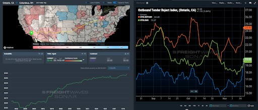 - Ontario’s outbound rejection rate has spiked to its highest point since July 4th with rejection rates to Columbus increasing above 24%.