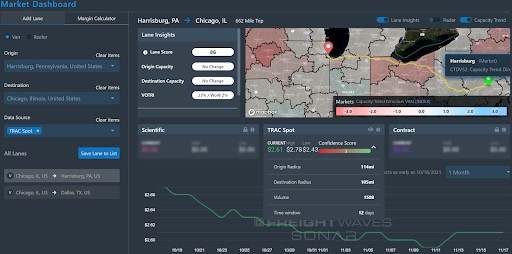 - The new SONAR Market Dashboard tool shows an average dry van spot rate of $2.61/mile, including fuel, from Harrisburg to Chicago and $2.73/mile, including fuel, from nearby Chambersburg to Chicago.