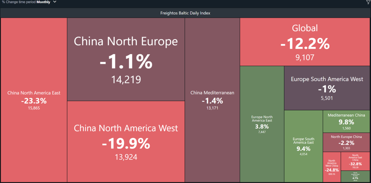 Then, as the estimated times of departures for these TEU volumes become actual times of departure (when the vessel departs its berth at origin), they are included in the calculation for the index value on that specific day.