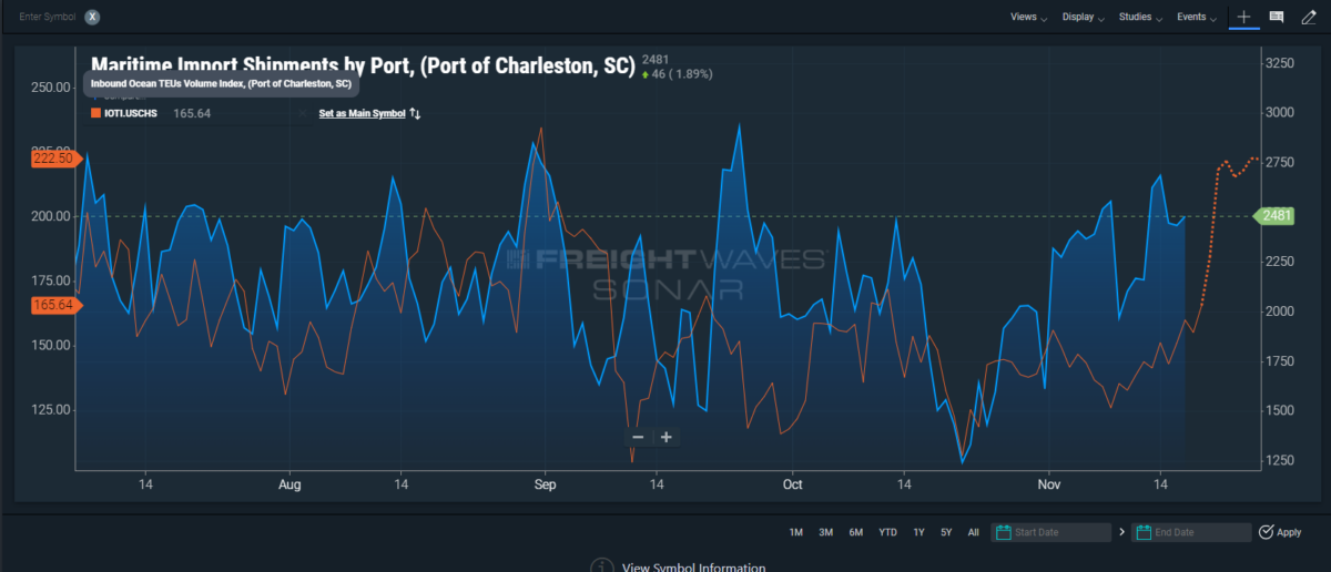 Looking forward, we see that there is a significant amount of import volume scheduled for the port of Charleston over the next month or so. Look for capacity to remain tight as import fueled demand remains high.