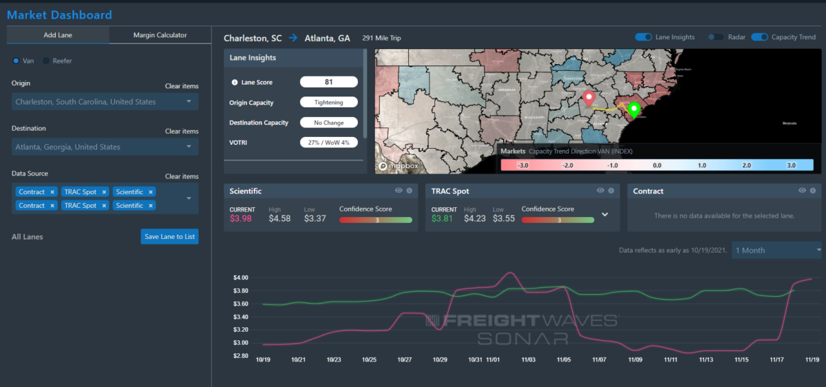 The Charleston to Atlanta lane has been volatile and most recently, has significantly tightened: