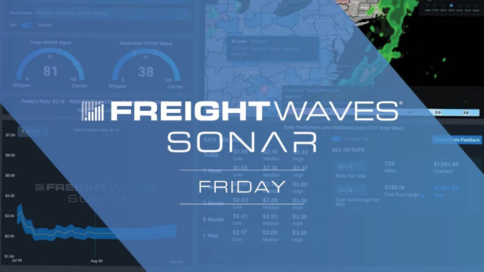 The highlights from Friday’s SONAR reports. For more information on SONAR — the fastest freight-forecasting platform in the industry — or to request a demo, click here. Also, be sure to check out the latest SONAR update, TRAC — the freshest spot rate data in the industry.