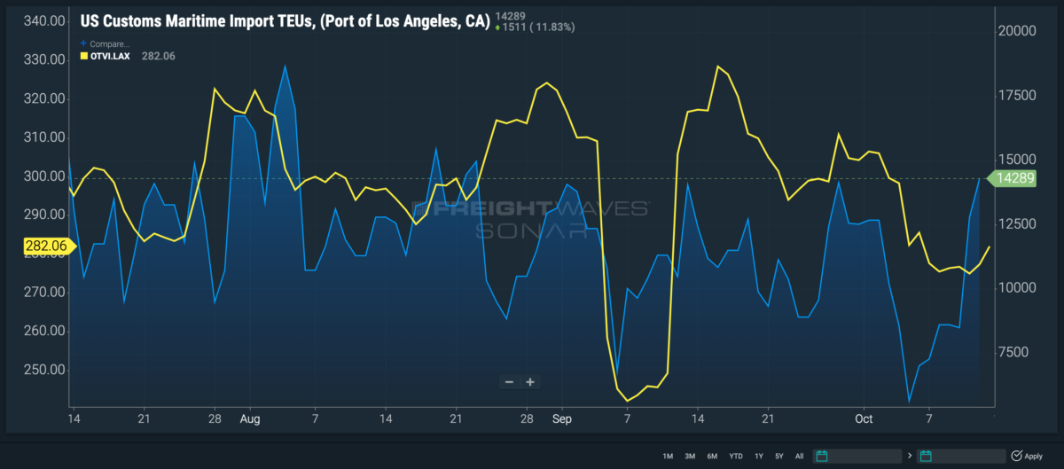 Volumes out of Southern California are continuing to pick up leading into the weekend after reaching their lowest levels in two years earlier this week.