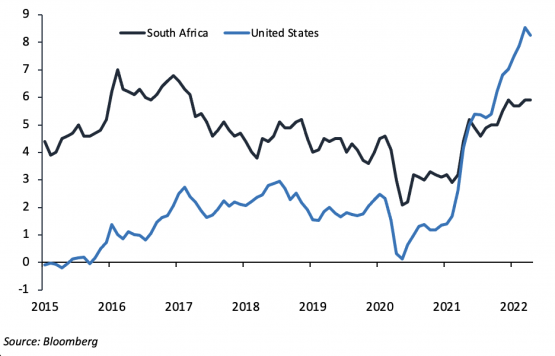 In contrast, many economies in the rest of the world have recovered to or are running above their pre-Covid levels, thanks to extremely loose monetary and fiscal policies. These supportive policies were maintained in the face of intensifying supply disruptions, which have now been exacerbated by the Russia/Ukraine war. Excessively high money supply growth led to the traditional “too much money chasing too few goods” in many developed markets, whereas the Sarb maintained tight control of the local printing press.
