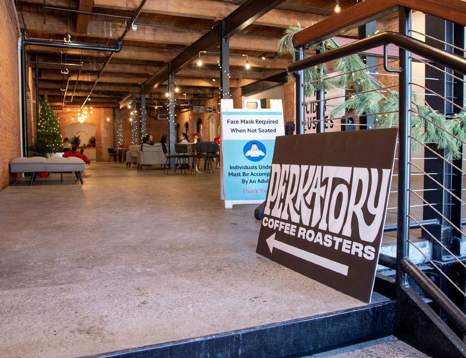 SOUTHINGTON — The new couches, chairs and tables between Rosie’s Royal Chocolates and Perkatory Coffee Roasters in Factory Square began filling up in the late morning.