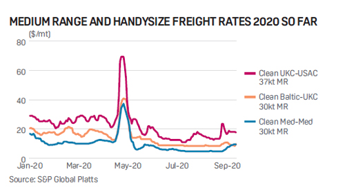 Similarly, uncertainty about demand for refined oil products given the possibility of further COVID-19 lockdowns is seen as overshadowing what is traditionally a strong end of year for clean tankers. Freight rates for the market were depressed for large stretches of the third quarter due to high inventories and lackluster downstream demand according to Platts.