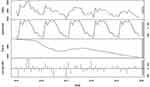 Figure 1 Seasonal decomposition analysis TB cases in Guangxi from 2015 to 2019. |