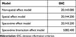 We used the deviance information criterion (DIC) to select the Bayesian model. The smaller the DIC value of the model, the better the model fit.