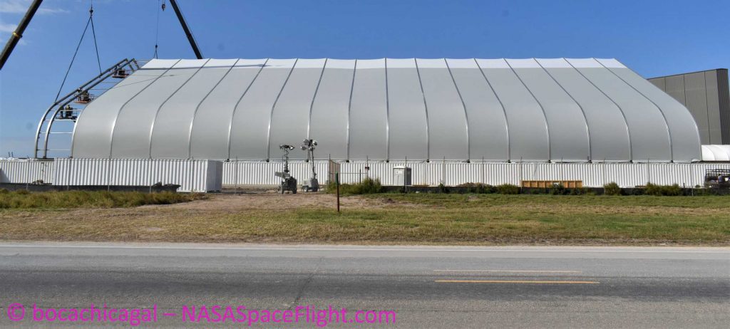 A big step towards more traditional aerospace-style manufacturing facilities, SpaceX has contracted the same company used by Tesla to create a fourth general assembly line (GA4) in a giant tent outside its Fremont, CA factory in 2018. Instead of Model 3s, however, Sprung Instant Structures (Sprung for short) is rapidly raising a large tent that will eventually allow SpaceX to fabricate and weld more Starship parts and sections in an enclosed environment, an improvement from the current practice of building prototypes out in the harsh environment of coastal Texas.