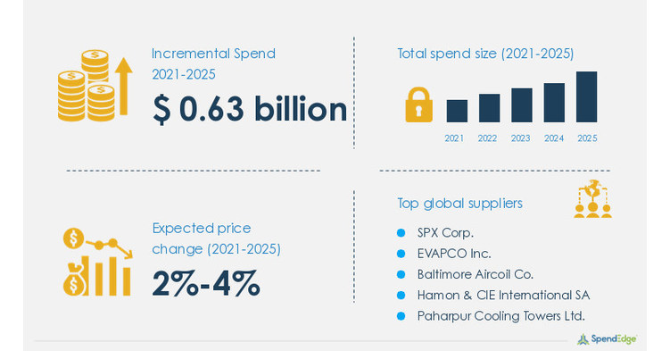 The procurement market will register an incremental spend of about USD 0.63 Billion, during 2021-2025. - What is the CAGR for Cooling Tower market?