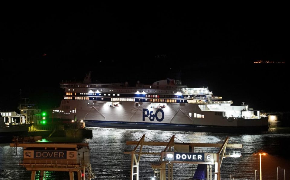 The Spirit of Britain departs from the Port of Dover, in Kent, as P&O Ferries resume Dover-Calais sailings for freight customers (Gareth Fuller/PA)
