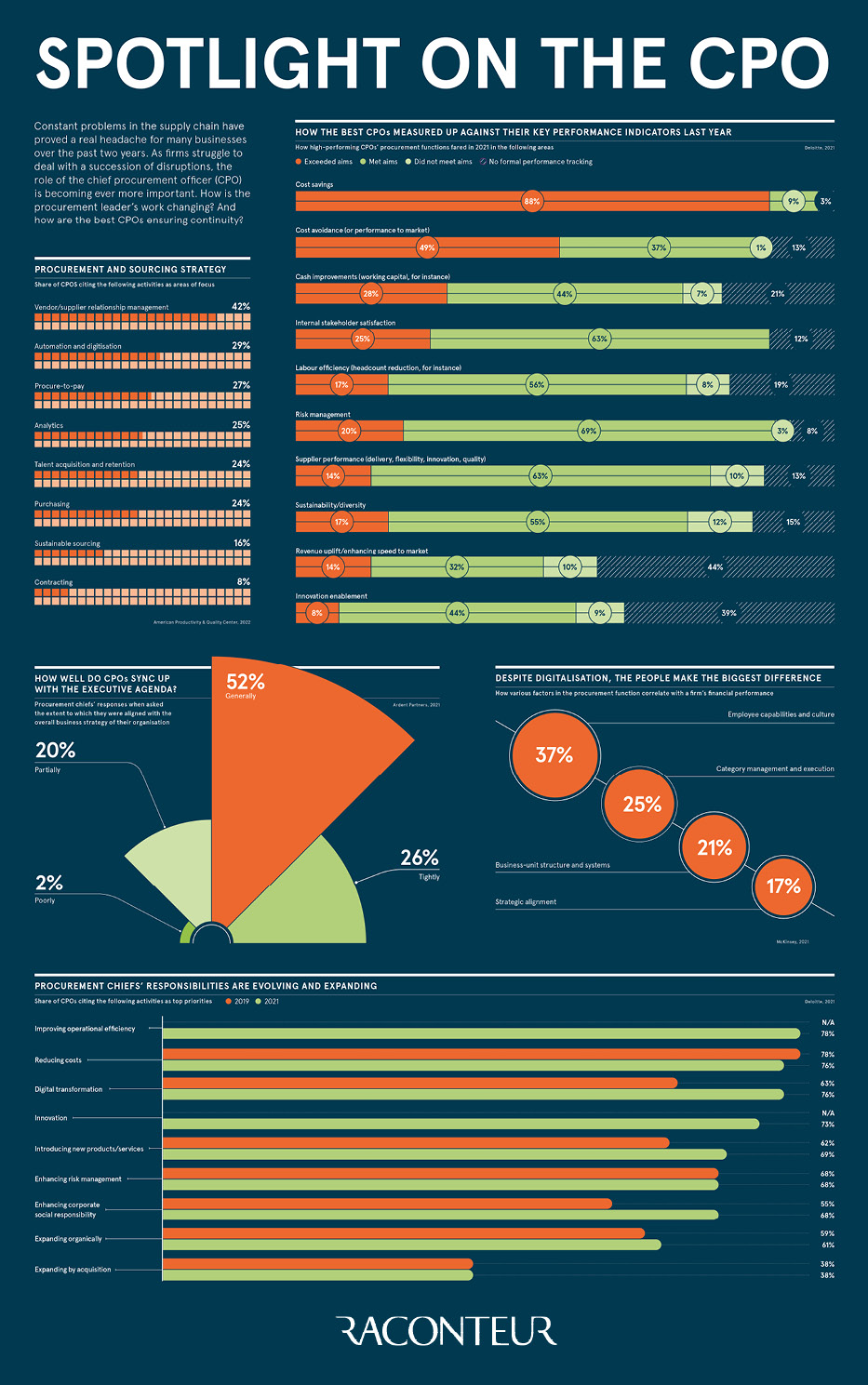 Constant problems in the supply chain have proved a real headache for many businesses over the past two years. As firms struggle to deal with a succession of disruptions, the role of the chief procurement officer (CPO) is becoming ever more important. How is the procurement leader’s work changing? And