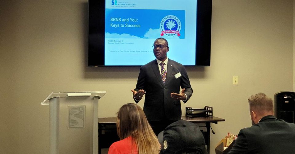 The Savannah River Nuclear Solutions Supply Chain Procurement leadership recently provided information about how to do business at the Savannah River Site during the Augusta Metro Chamber of Commerce’s “Third Thursday Business Builder” meeting.