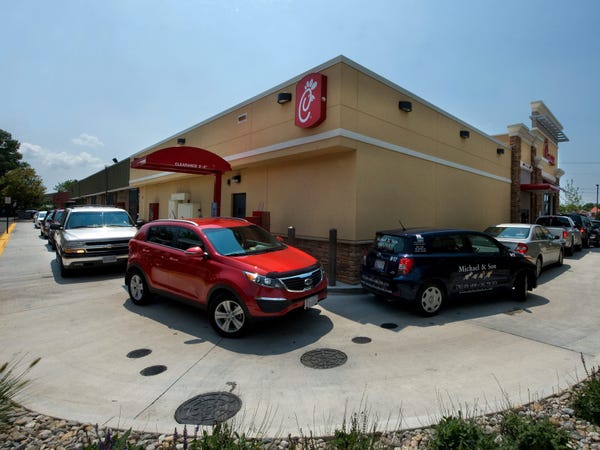 Meanwhile, former CEO Dan Cathy estimates that as many as 30% of customers drive away from Chick-fil-A because of long lines. The chicken chain does have longer than average wait times at nearly nine minutes, the longest out of 10 major chains surveyed.