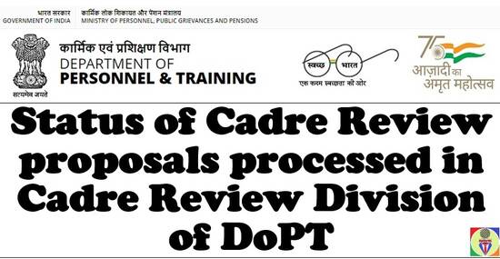 Status of Cadre Review proposals processed in Cadre Review Division of DoPT from 1st January 2016 to 30th September, 2022 (as on 06th October, 2022)