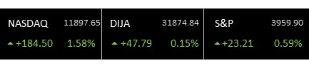 NASDAQ-Adv: 3,460 Dec: 963 NYSE-Adv: 3,387 Dec: 763 (Source: Nasdaq)