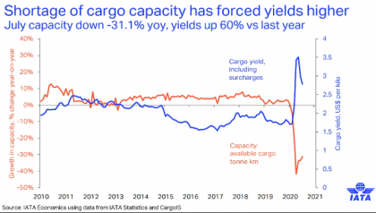 As in ocean freight, the Latin American market has rebounded somewhat, but IATA warned that it could face worsening capacity problems.