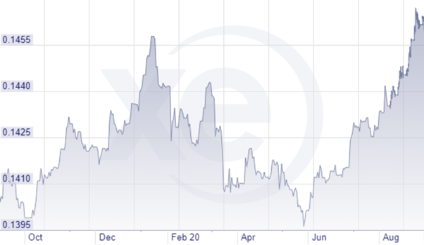 The strengthening NZD against the USD has offset the increases in log sale prices in USD. The NZD was worth 0.6629 USD on the first of August and 0.6760 USD on the first of September. The NZD has recently dropped back into the 0.66 range. Any weakening of the NZD against the USD will assist October AWG pricing.