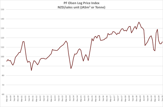 Basis of Index: This Index is based on prices in the table below weighted in proportions that represent a broad average of log grades produced from a typical pruned forest with an approximate mix of 40% domestic and 60% export supply.