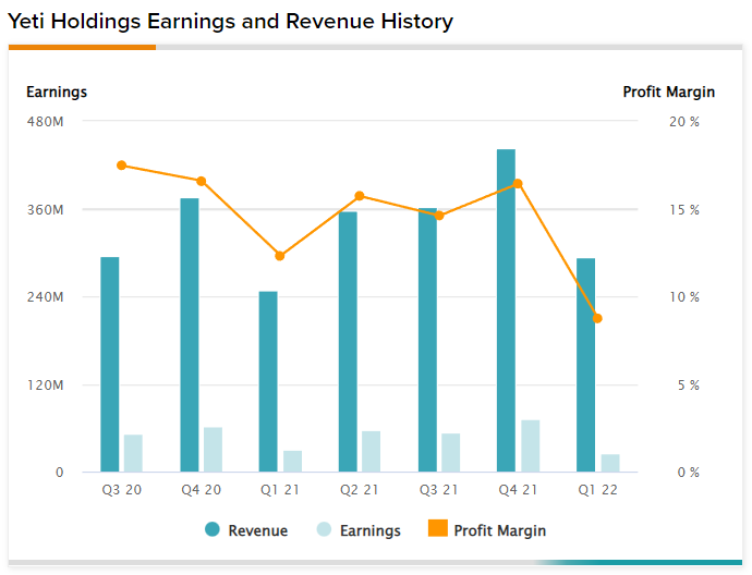 However, it’s equally possible that production costs could increase in the ongoing inflationary environment. Further, consumers’ purchasing power could decline if the economy undergoes a recession, favoring YETI’s cheaper competitors that don’t charge a premium for their products.