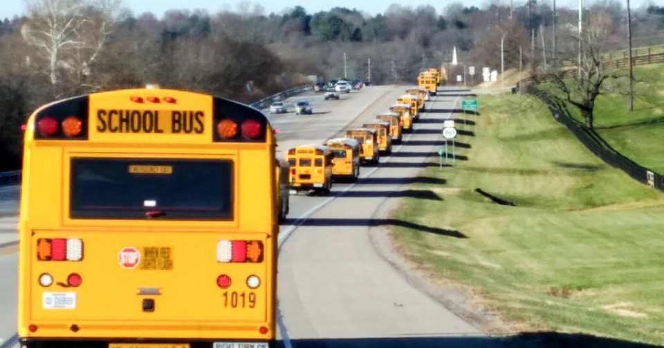 When the caravan made its way to Winchester and Mt. Sterling, school districts in those areas tagged on and began their journey. As the buses carried through toward the Bluegrass Parkway, districts in Central Kentucky joined the caravan.