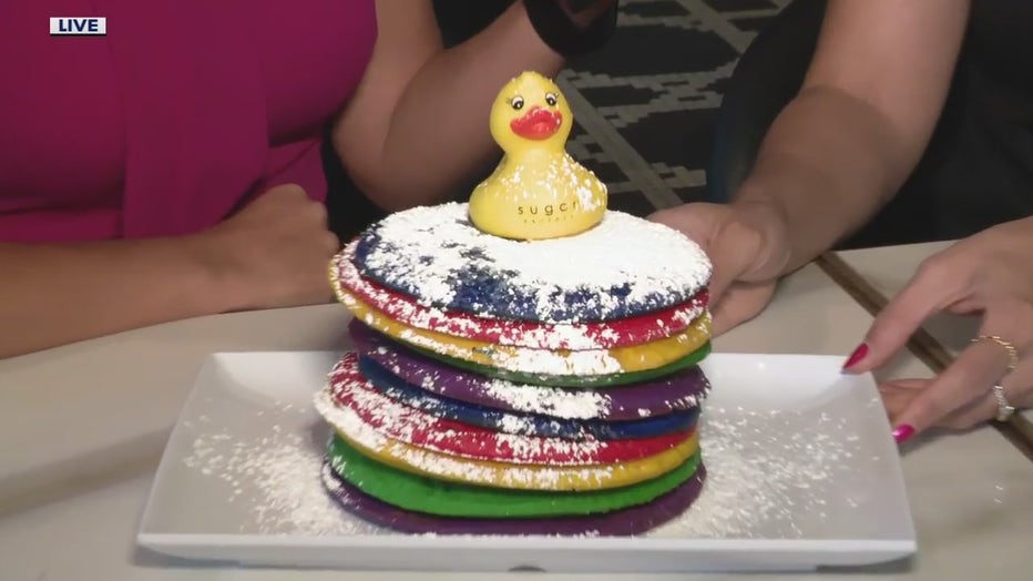 There are rainbow-colored sliders, rainbow-colored pancakes, and prepared cocktails that come in a goblet. Just make sure if you’re feeling like desert you keep your eye on the King Kong Sundae: it’s $99.
