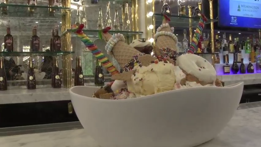 The Sugar Factory’s signature dessert, the King Kong Sundae, features 24 scoops of ice cream and several other toppings. 1/27/22