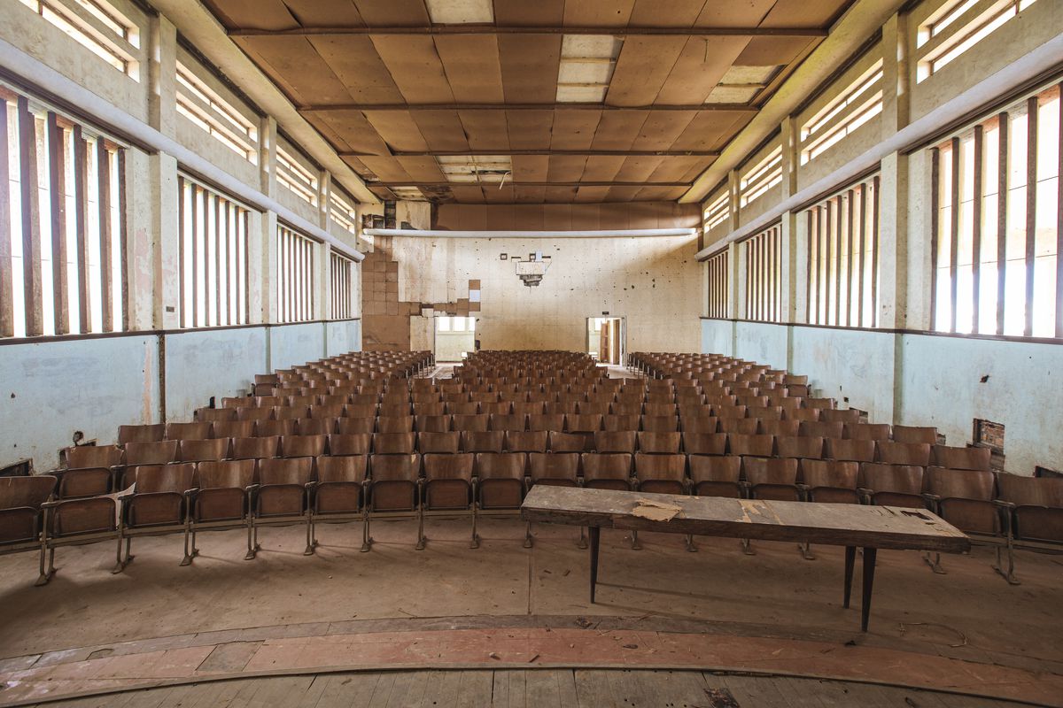 An abandoned 300-seat cinema and theater built by the Belgian colonialists.