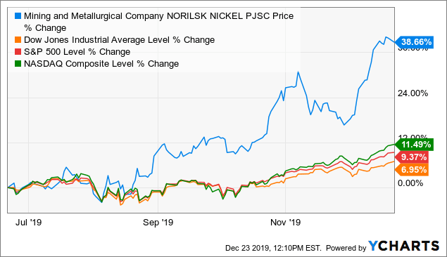 I first mentioned that I bought a half-position in NILSY in an 06/24/2019 comment to my own article that SA published five days earlier on 06/19/2019. From those date stamps, Norilsk hit my radar fully six weeks before Bloomberg’s article referenced above. Consistent with my supply-chain hypothesis, NILSY has outperformed the Dow, the S&P, and the NASDAQ since; alpha.