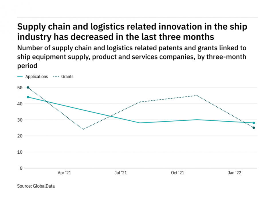The most recent figures show that the number of supply chain and logistics related patent applications in the industry stood at 28 in the three months ending February – down from 44 over the same period in 2021.