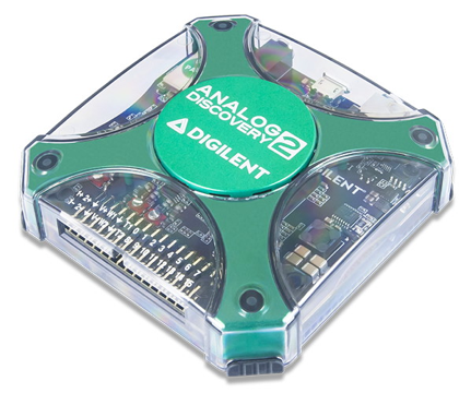 Analog Discovery 2: 100MS/s USB Oscilloscope, Logic Analyzer and Variable Power Supply (Image source: Digilent)