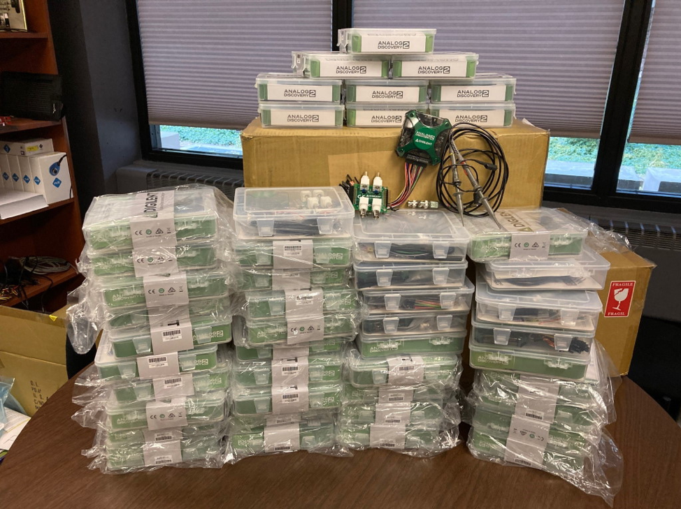 Fifty new Analog Discovery 2 units (Image source: Keith Graham)