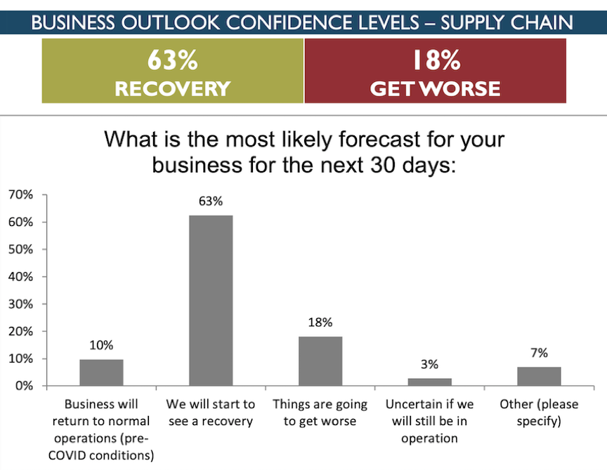 Some 63% of supply chain respondents in the AIA’s recent Business Operations Survey said they expect to see signs of recovery within the next month. Only 18% of supply chain respondents saw things deteriorating further in the next 30 days.