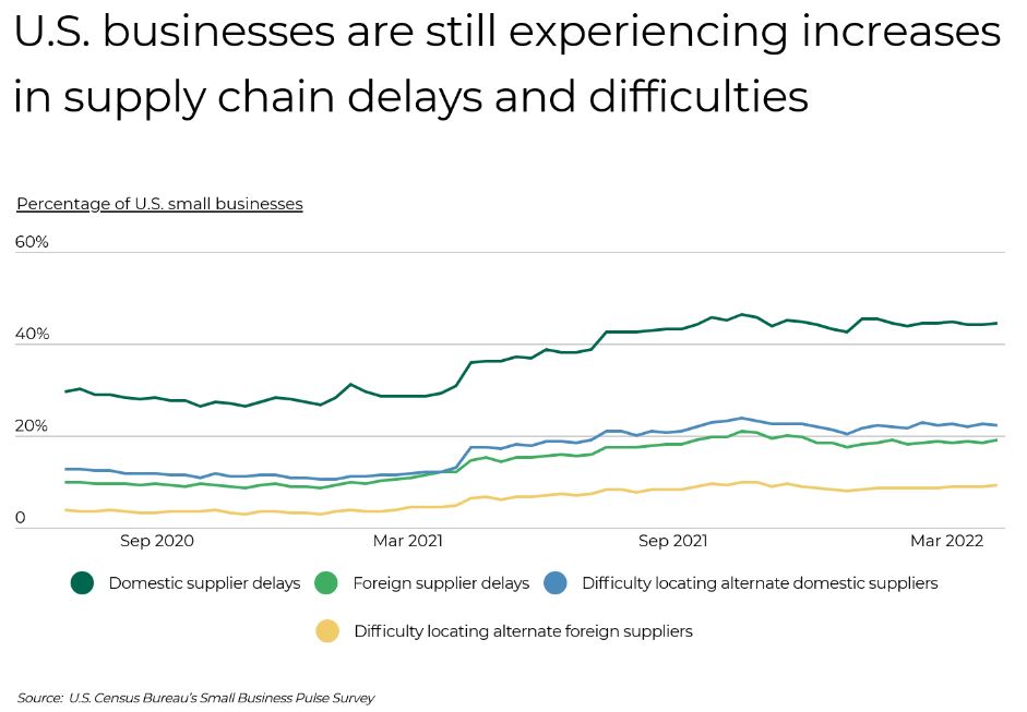 - Businesses having difficulties locating alternative domestic suppliers: 21.9%